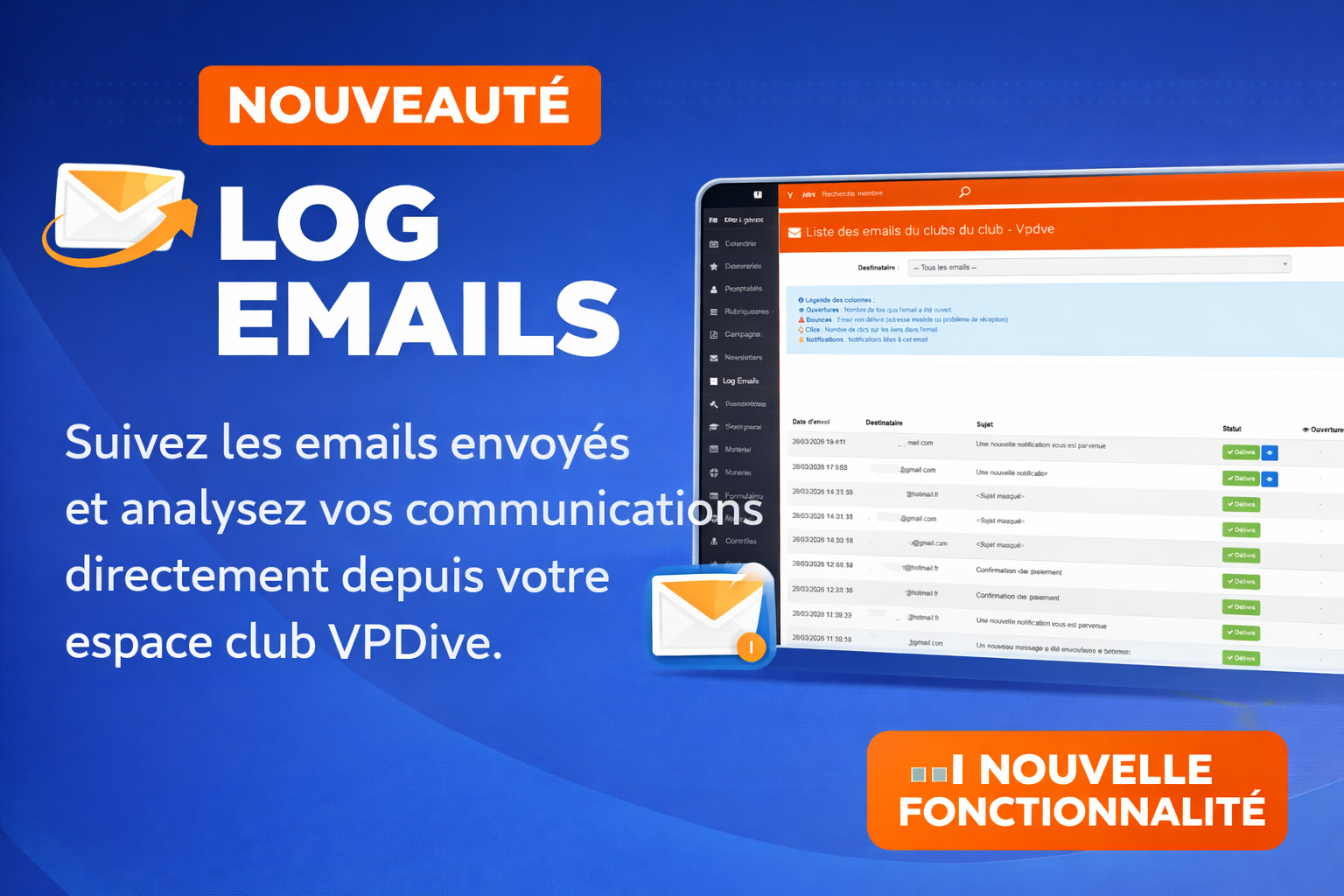Cet écran vous permet de suivre l’ensemble des e-mails envoyés...